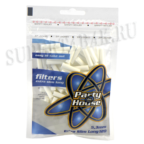 Фильтры для самокруток 5.3 мм - Party in House - Extra slim Long (120 шт) купить за 70 руб. в Москве.