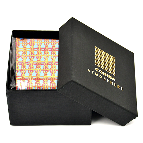 Галстуки своей тонкой текстурой воссоздают привлекательные фигуры и цвета, связанные с имиджем бренда Cohiba Atmosphere