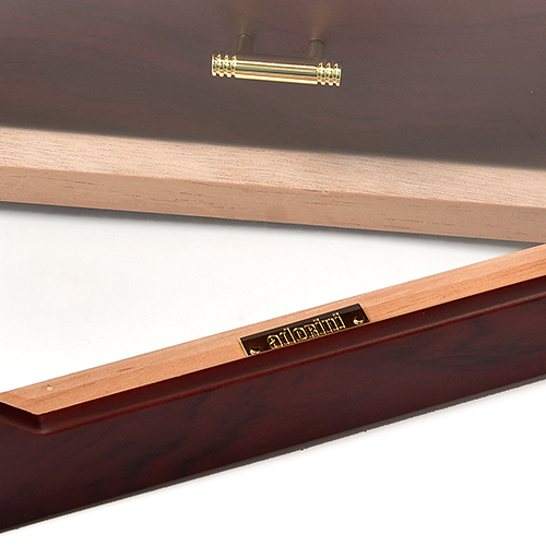 Модель Adorini Chianti Medium Rosewood имеет три выдвижных ящика из кедровой древесины. Встроенный спереди волосяной гигрометр легко доступен через стеклянную дверцу с магнитным замком.