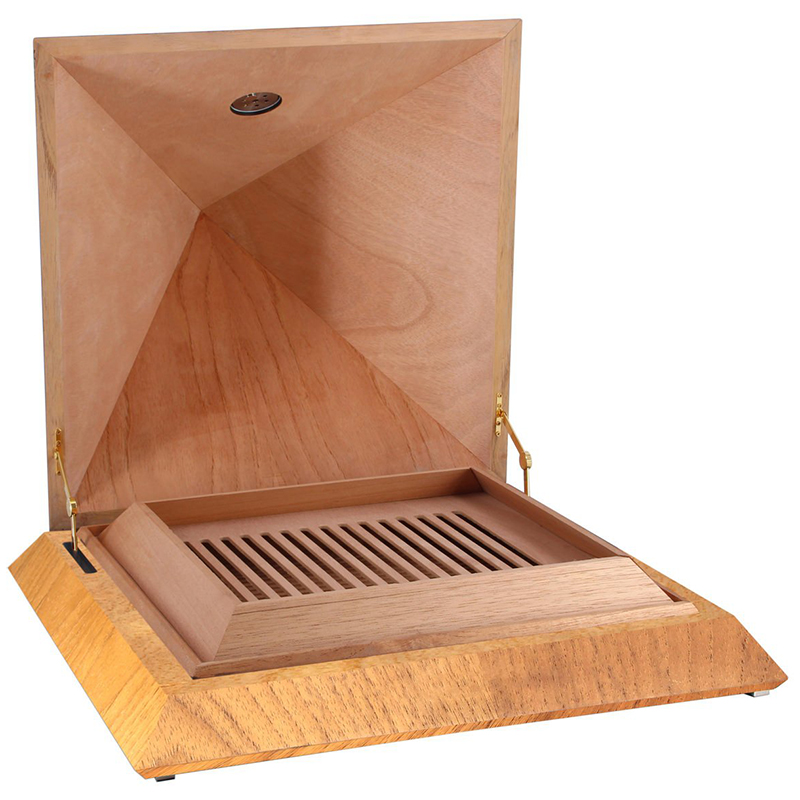 Этот роскошно оформленный хьюмидор в форме пирамиды, покрытый шпоном испанского кедра, станет настоящей жемчужиной вашего интерьера, а также незабываемым подарком.
