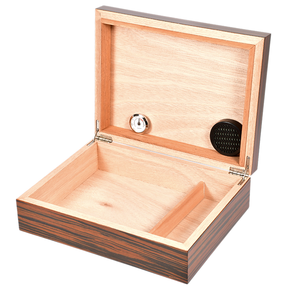 Комплектация: Аналоговый гигрометр , увлажнитель, съемный разделитель для сигар.***