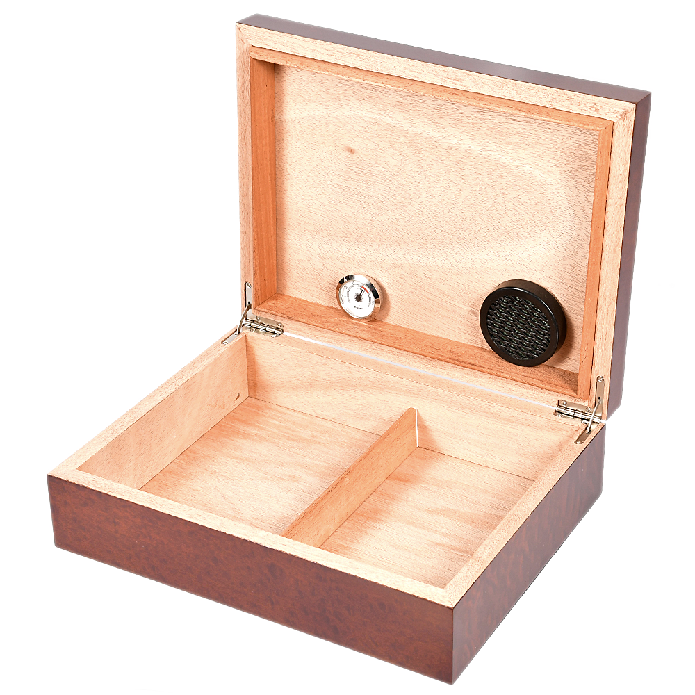 Комплектация: Аналоговый гигрометр , увлажнитель, съемный разделитель для сигар.***