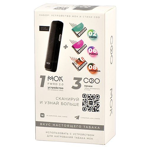 Комплектация: MOK - Forward 2.0, 3 пачки стиков COO, USB-кабель.