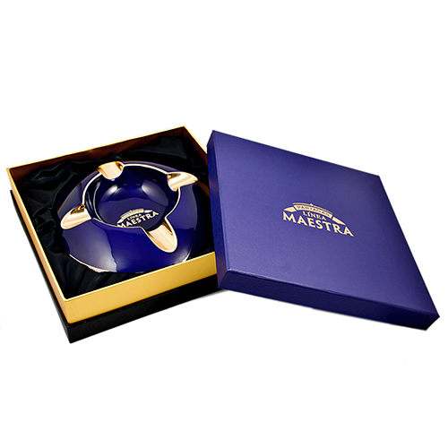 Это коллекционная, элегантная пепельница синего цвета с золотыми деталями, изготовлена из высококачественного фарфора.