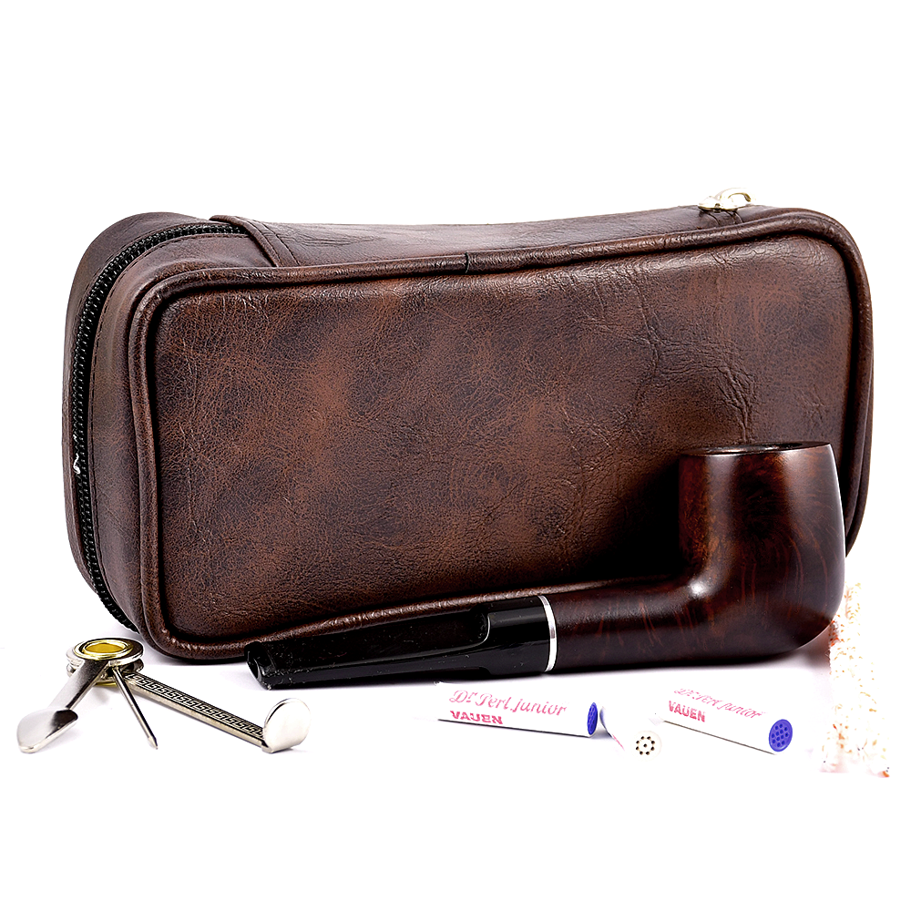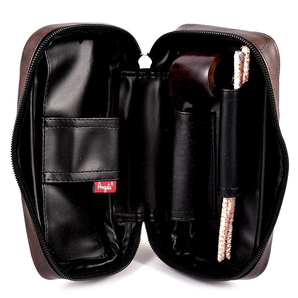 Кожаная сумка прошита хорошо, трубка помещается плотно, не болтается, есть боковой отдел.