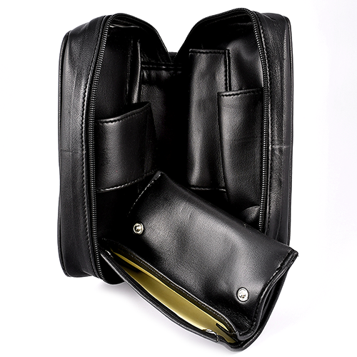 Имеет прорезиненный кисет для табака и отделение под курительные аксессуары.