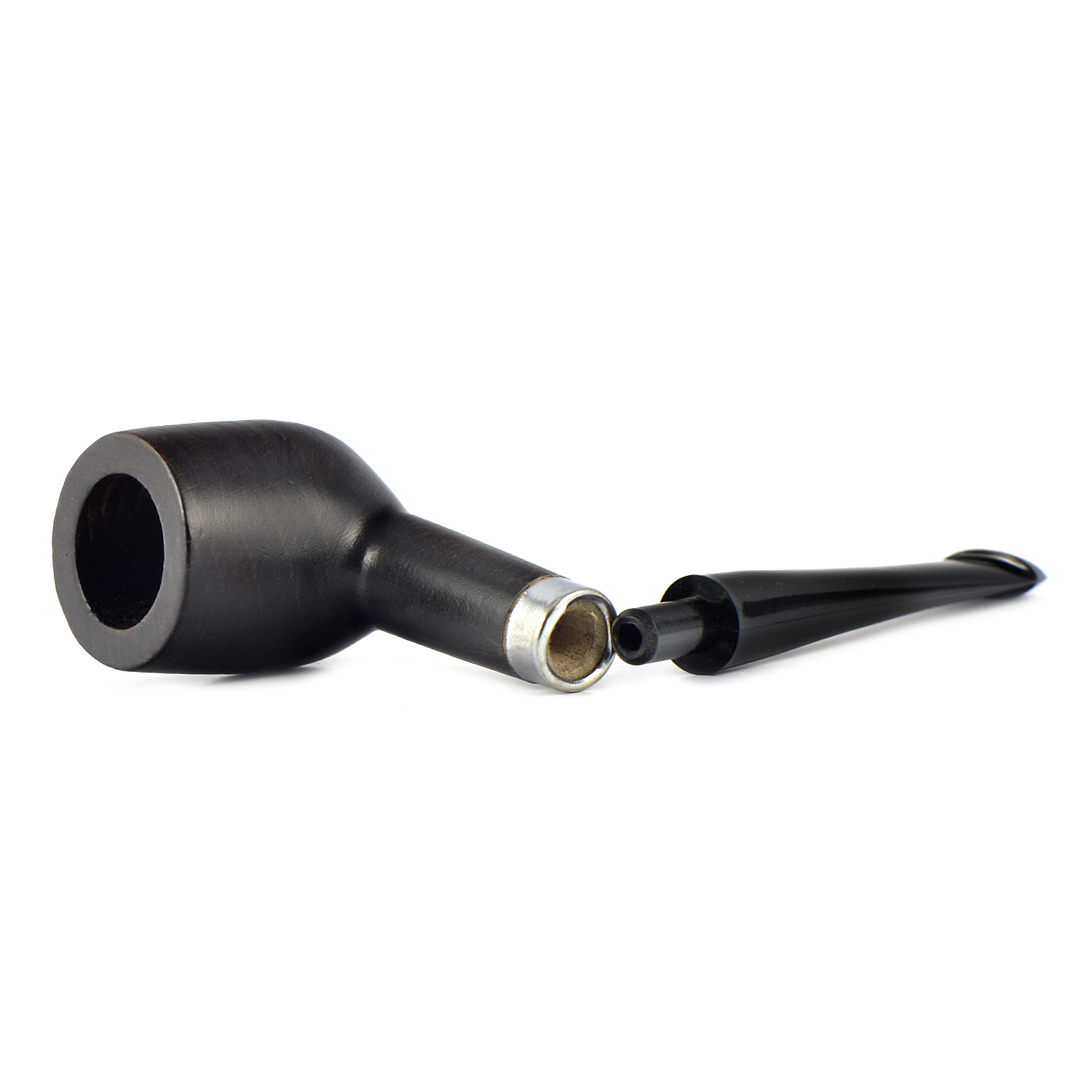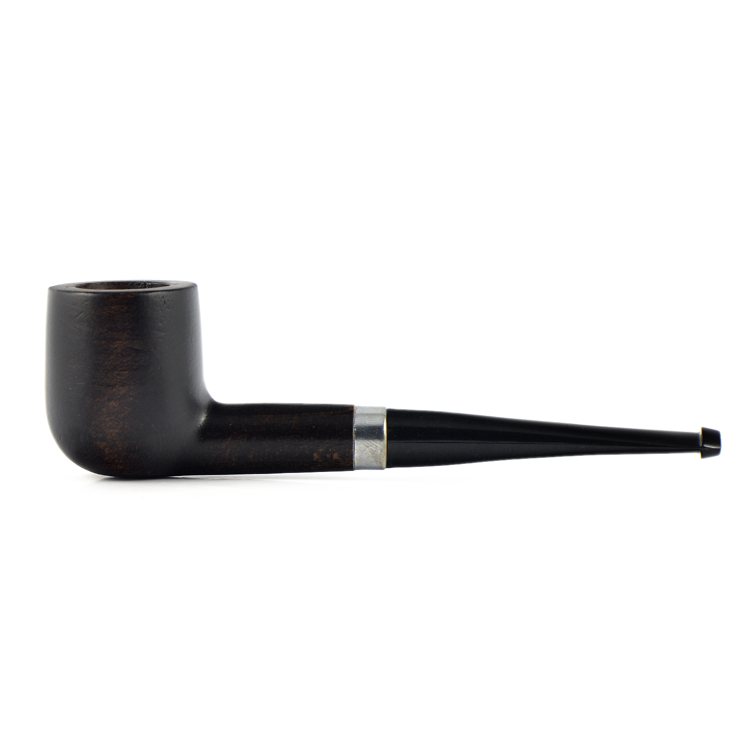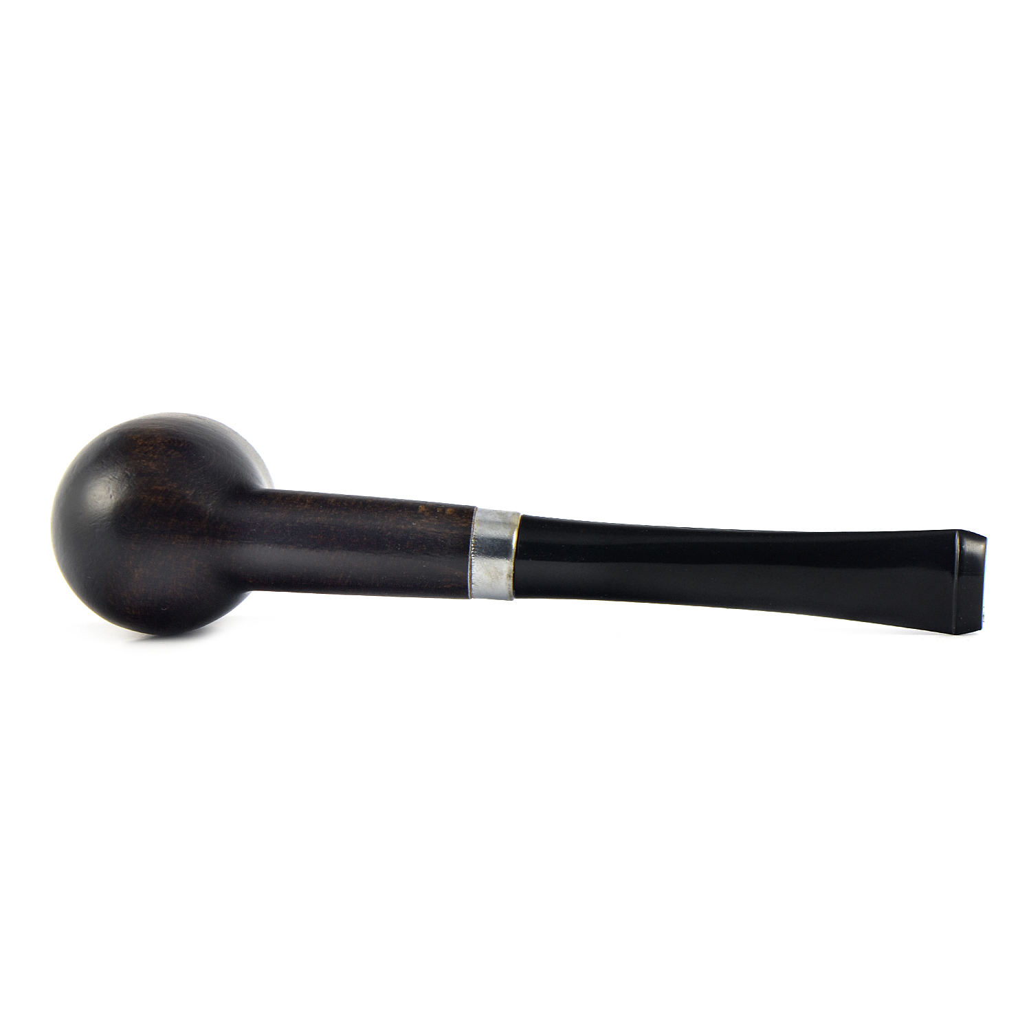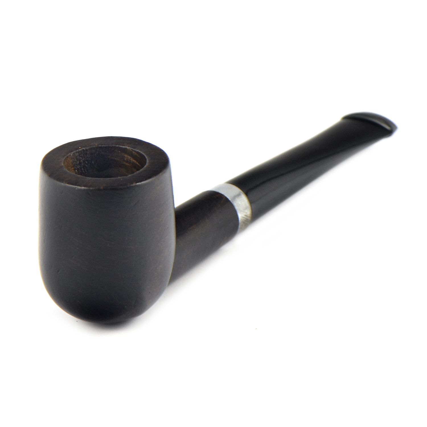 В итоге, довел до ума эту трубочку и она стала чуть ли не моей любимой, благодаря этой трубочке открыл для себя кайф безфильтрового курения! Сошкурил толстый слой лака, отполировал мелкой шкуркой, высверлил руст на грани табачной камеры, покрыл трубку черной краской для кожи, обжег на лучине, растворил хром на металлическом кольце в уксусе, кольцо оказалось латунное, что очень ему идет, заменил мундштук на удобный эбонитовый, откорректировав диаметр шкуркой. Возможно это плацебо, но трубочка вкусно курилась и с вирджиниями и с латакиевыми смесями, подо что ее и определил. Теперь очень люблю эту трубочку, да простят меня адепты брипрового духа.