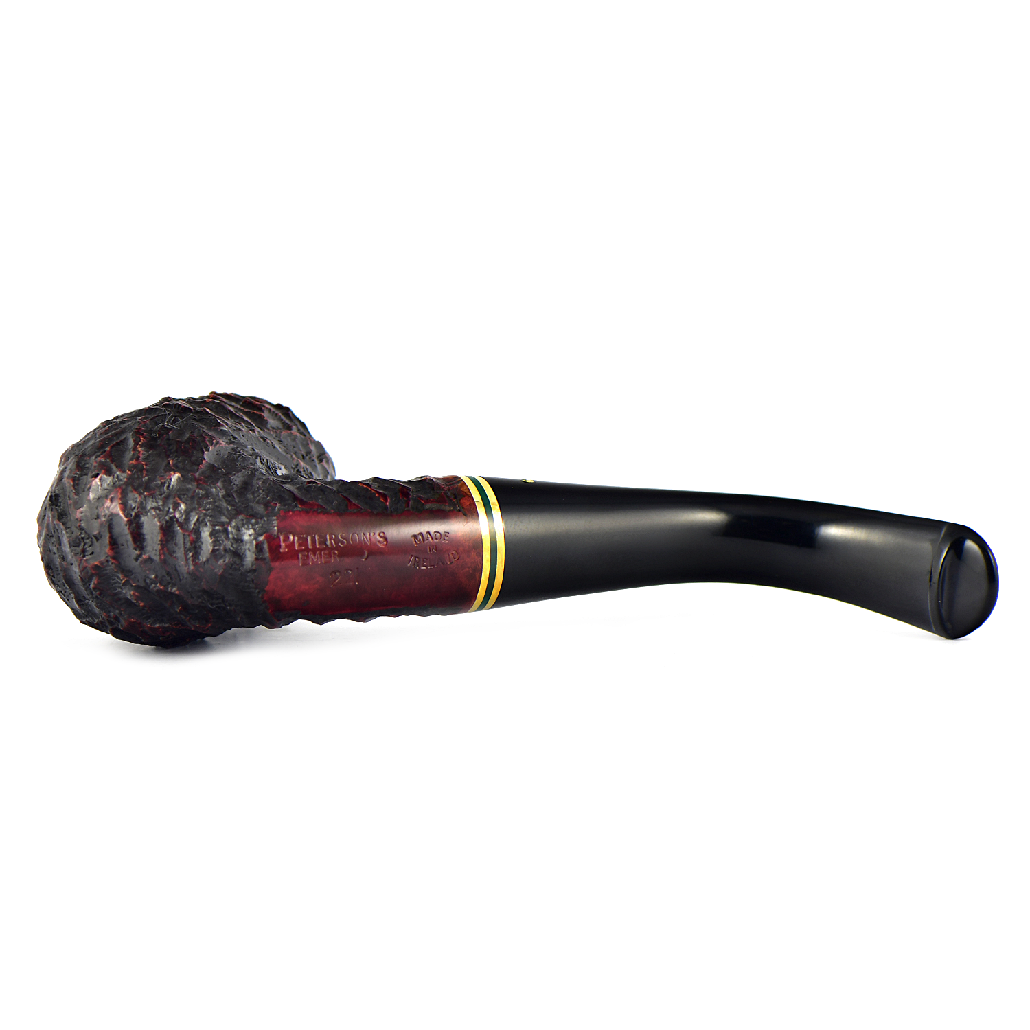 Линия Emerald Rusticated, характеризующаяся глубоким и скалистым рустом с потрясающими акцентами теплой латуни и зеленого акрила, демонстрирует фирменный стиль Peterson с классической презентацией, напоминающей зеленый пейзаж Ирландии. Доступная во множестве самых популярных классических форм, эта линия подчеркивает знаменитую рустированную торговую марку Peterson и традиционные мундштуки P-Lip, запатентованную конструкцию, которая, как доказано, уменьшает прикусывание языка.
