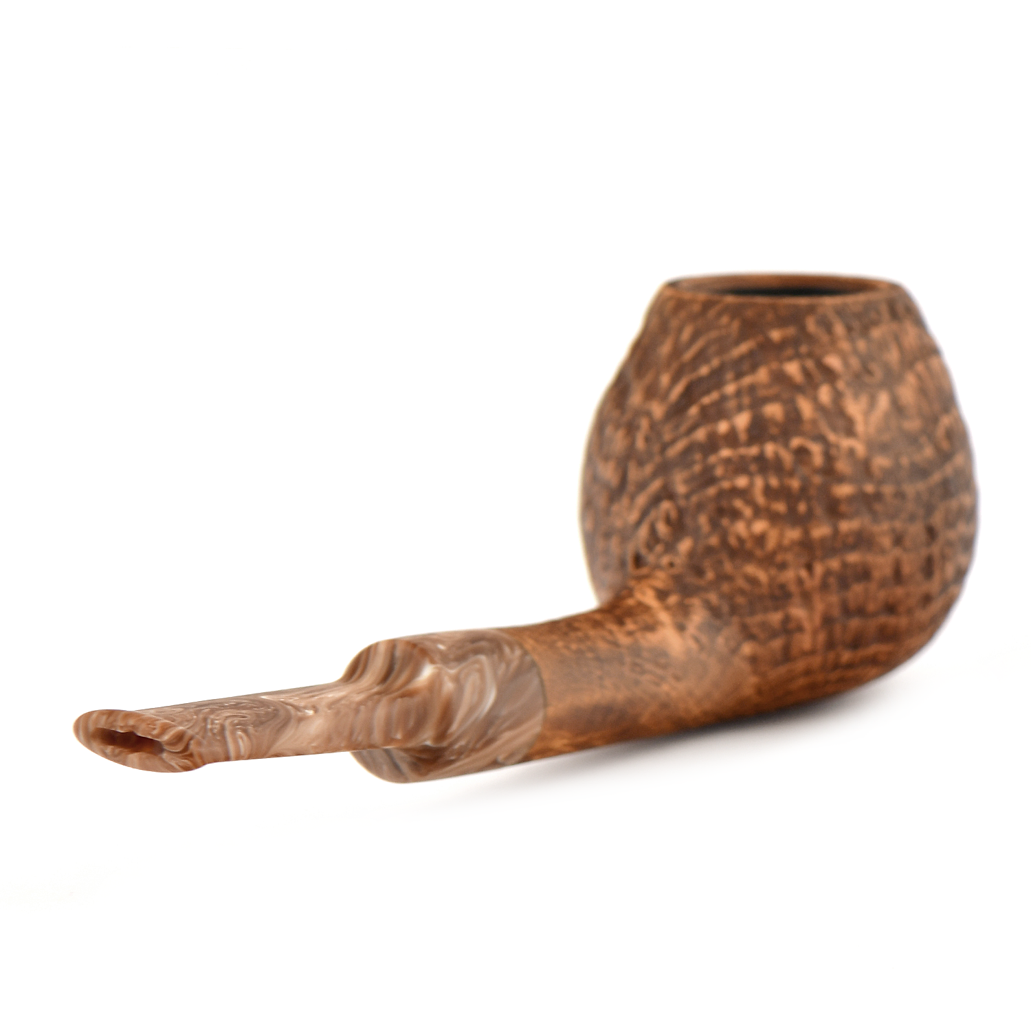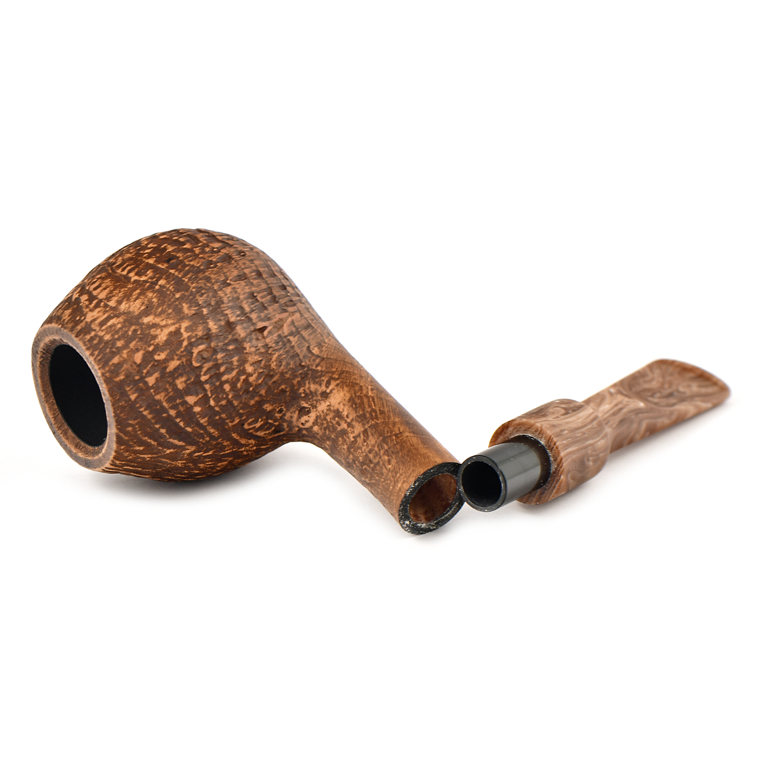 Матовый мундштук с двухцветным дизайном искусно гармонирует с пескоструйной обработкой поверхности, что также придает трубке приятные тактильные ощущения.