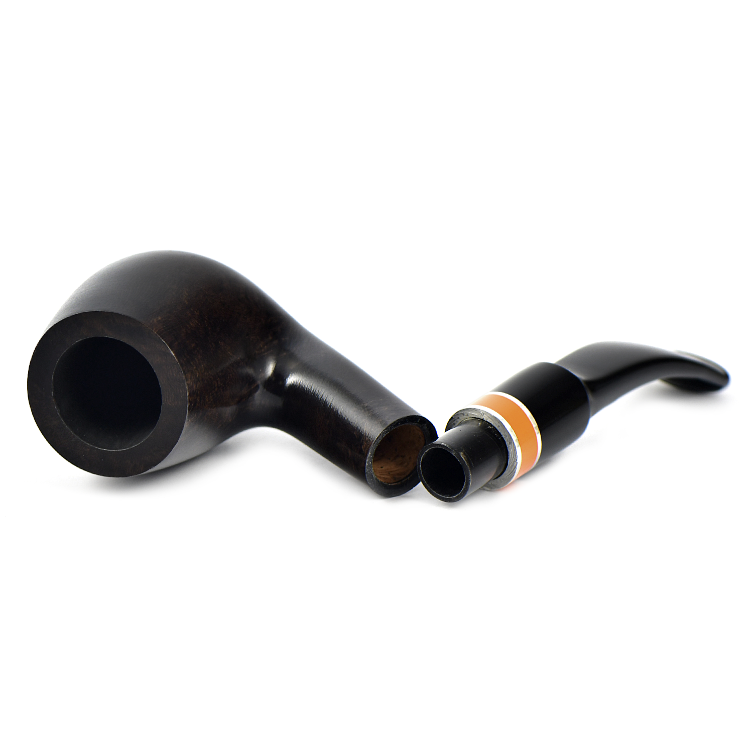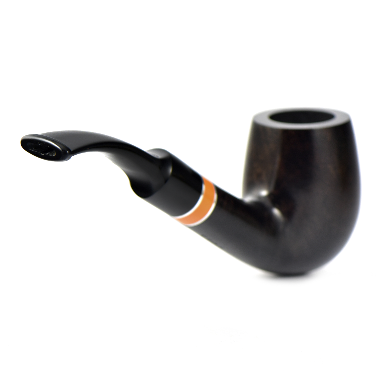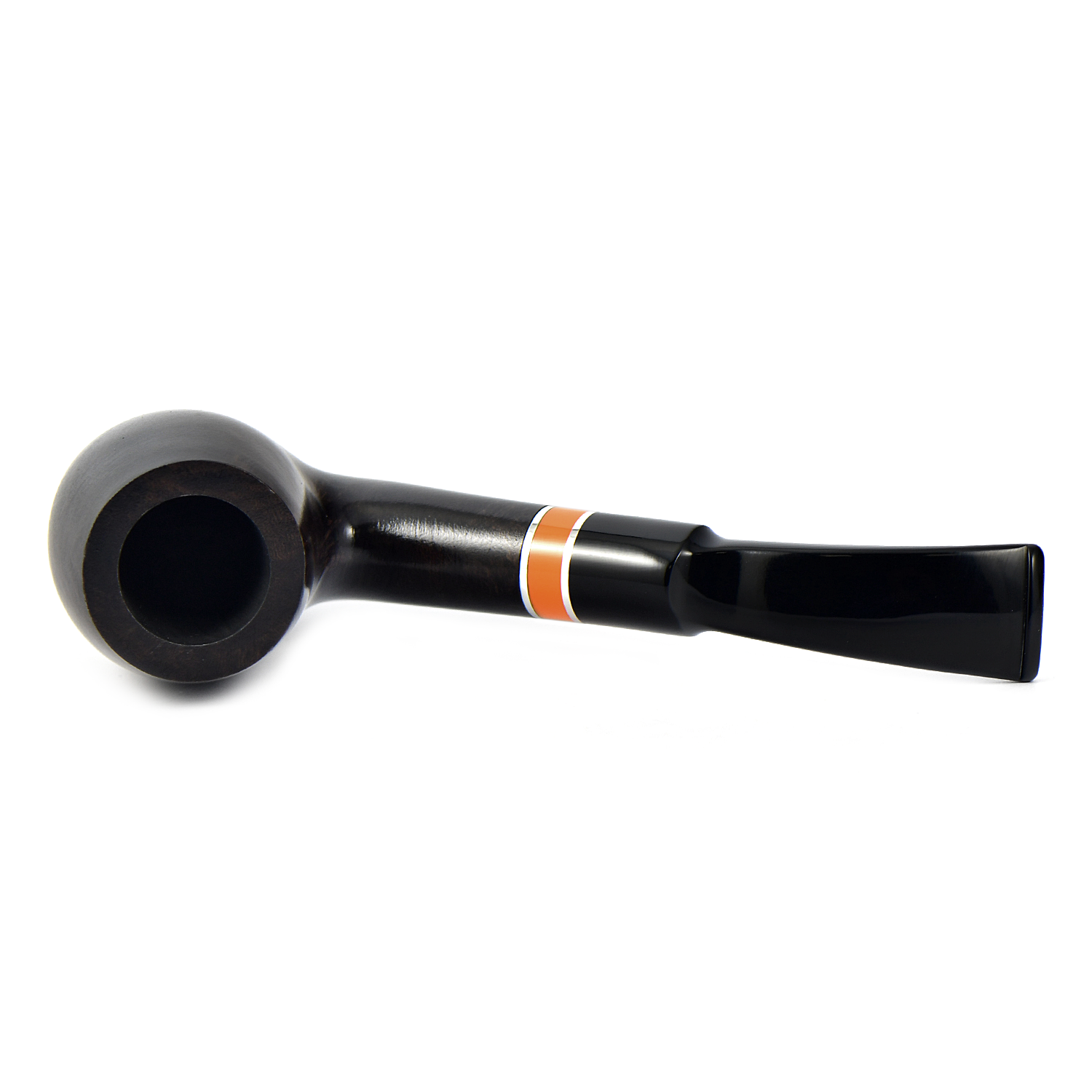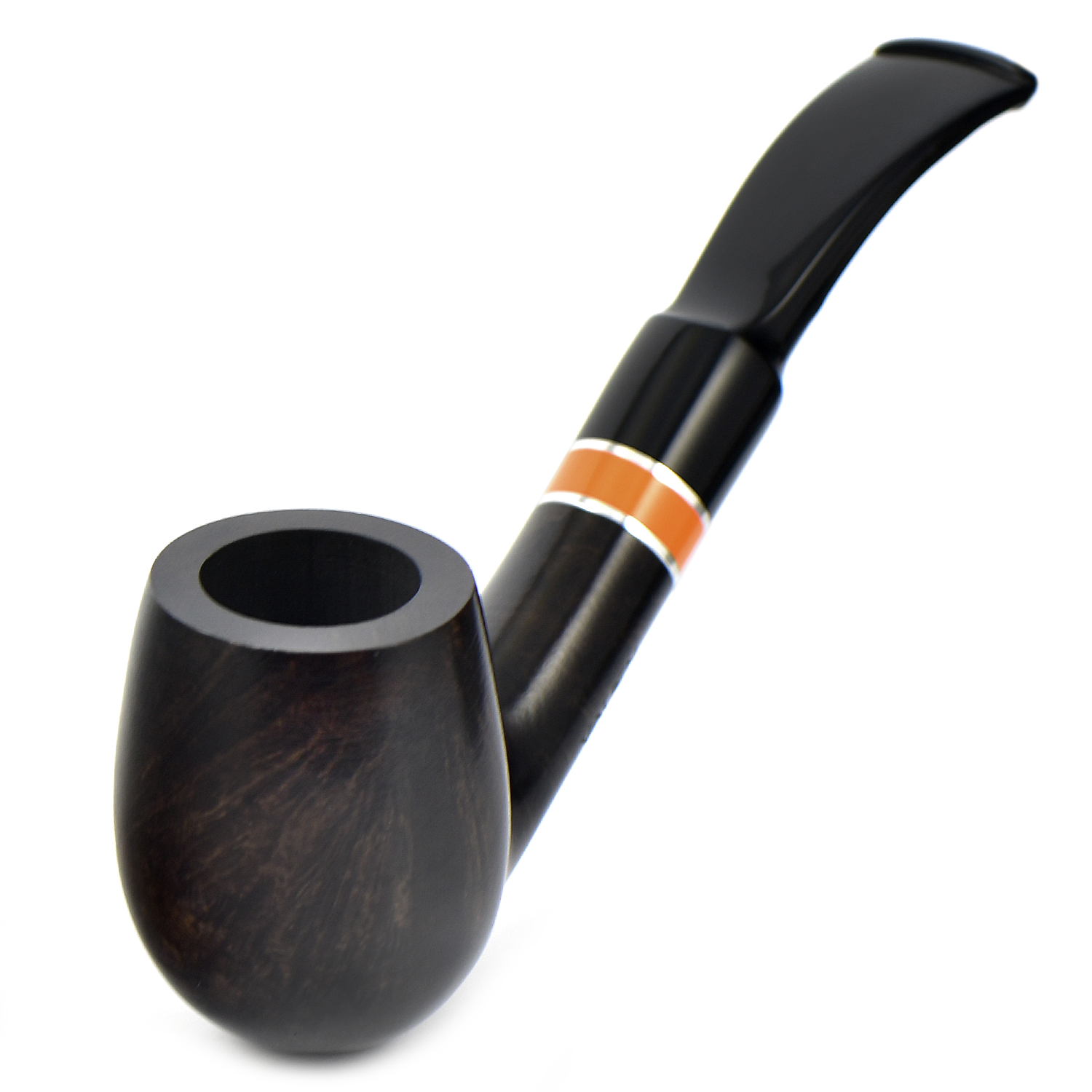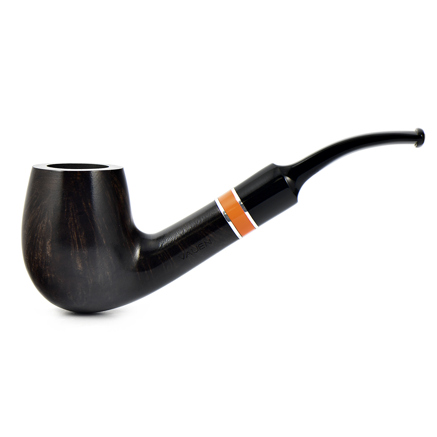 Курительная трубка Vauen Flame - Оранжевое кольцо в окружении двух серебристых. удачно расставляет цветовой акцент на этой модели. Контраст подчеркивается очень тёмным тоном трубки.