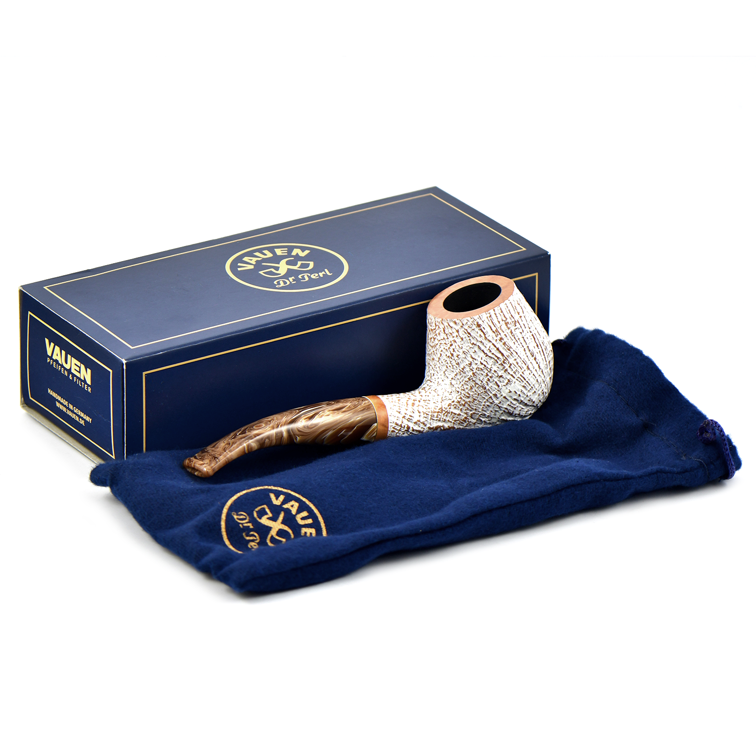 Курительная трубка Vauen Fuji - Удивительное сочетание чаши обработанной пескоструйной обработкой и окрашенной в белый цвет, с матовой отделкой мундштука с коричневыми разводами соответствующего цвета.