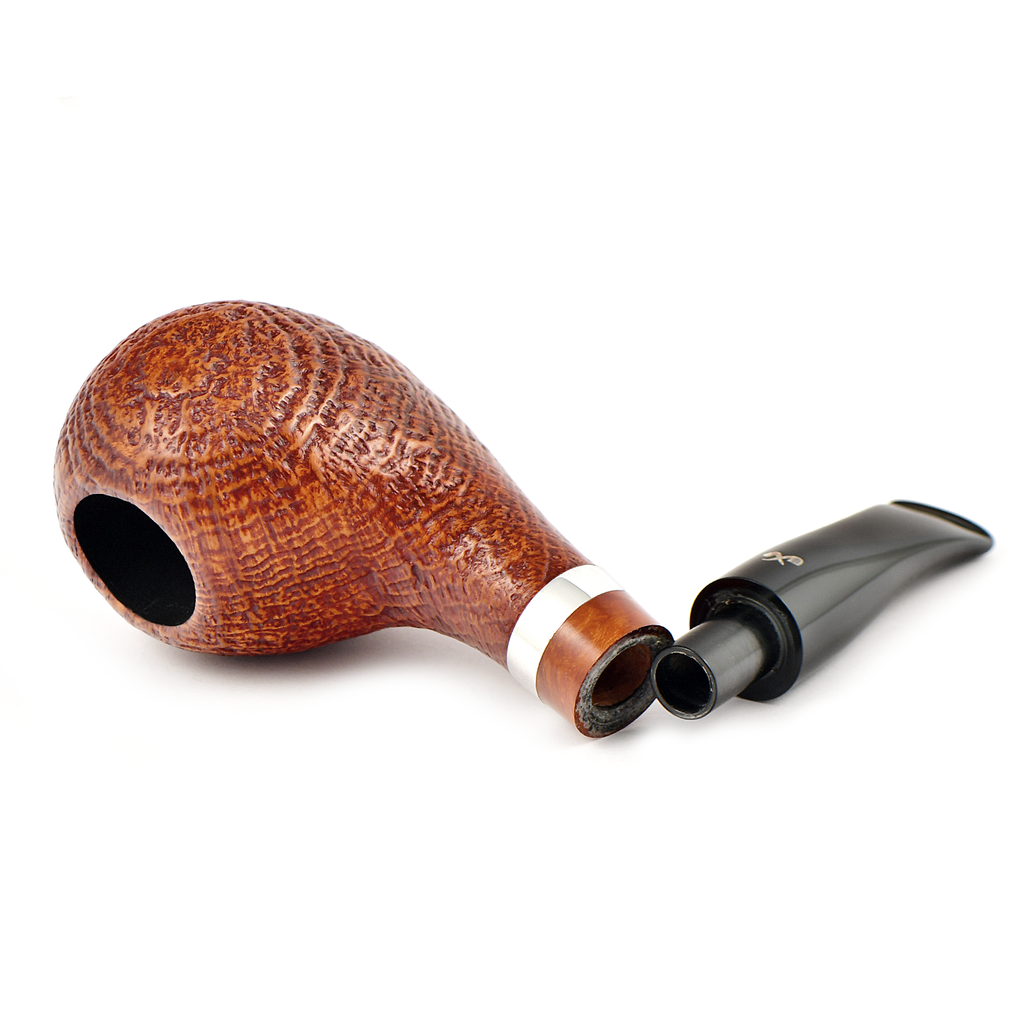 Слегка изогнутый мундштук стильно прерывается серебристым кольцом.