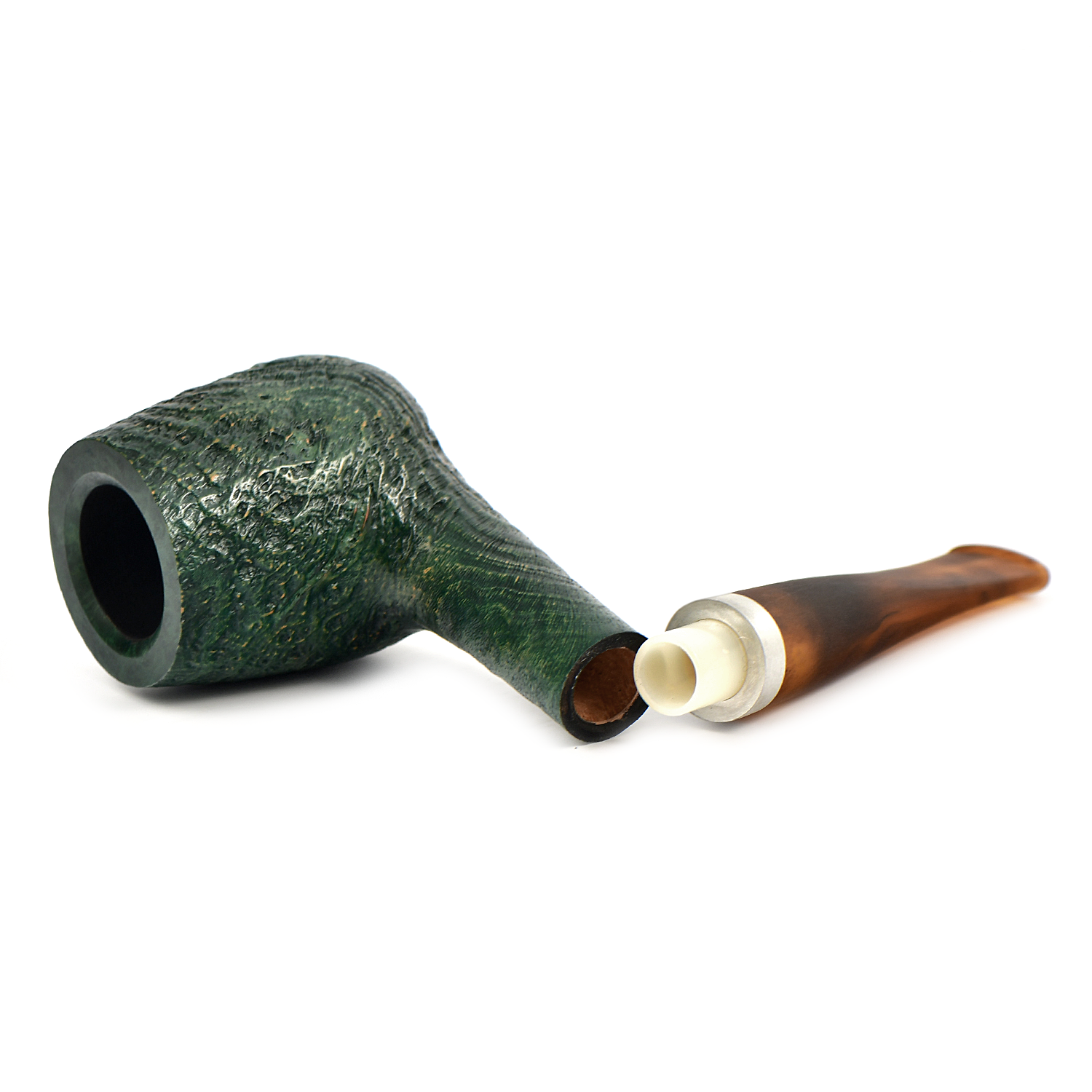 Сложные процессы шлифовки, окрашивания и полировки придают отделке этих трубок очаровательный винтажный флёр, который идеально сочетается с кольцом из матового алюминия и крапчатым коричневым мундштуком.