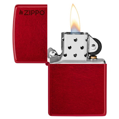 Зажигалка ярко-красного цвета "Candy Apple Red" отличается полупрозрачным покрытием, позволяющим просвечивать текстуре корпуса и металлическим оттенкам.