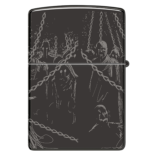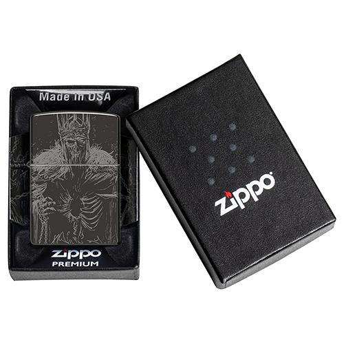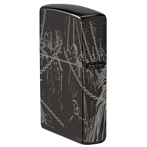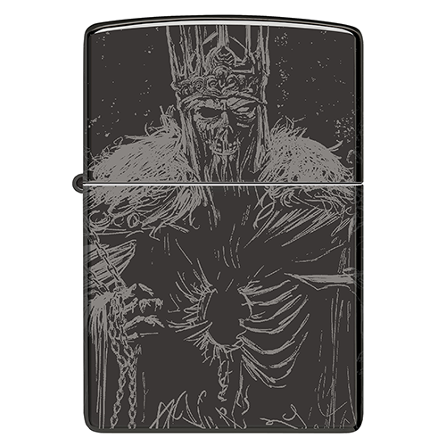 Скелет монарха возвышается над своими проклятыми приспешниками на этой полированной черной зажигалке с совершенно устрашающим дизайном Photo Image 360°.".